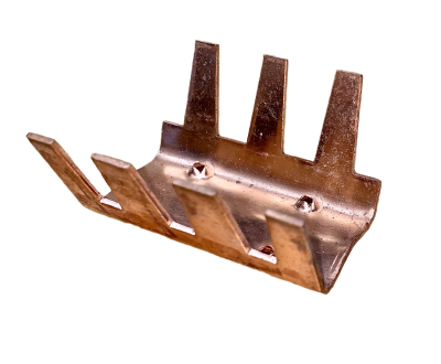 Stamped lightning protection parallel splicer with compression type fingers to crimp around Lightning Conductor. Made from 14-gauge Copper or 10-gauge Aluminum stock. For use with all main size conductors on Class I structures only. UL Listed.