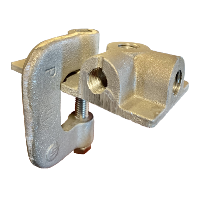 C – Clamp Air Terminal Lightning Protection Base provides 8 square inches of surface contact. It can be directly mounted to the horizontal metal beam. Part #254 fits up to 1” thick surface and part #255 fits 1”- 3” thick surfaces.